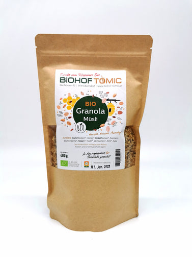 Das Müsli aus kontrolliert biologischem Anbau - am Biohof Tomic in der eigenen Backstube geröstet: